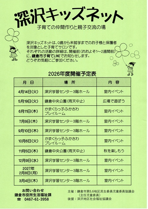 | 主な活動場所 | 深沢学習センター、鎌倉中央公園、放課後かまくらっ子ふかさわ プレイルーム | |
